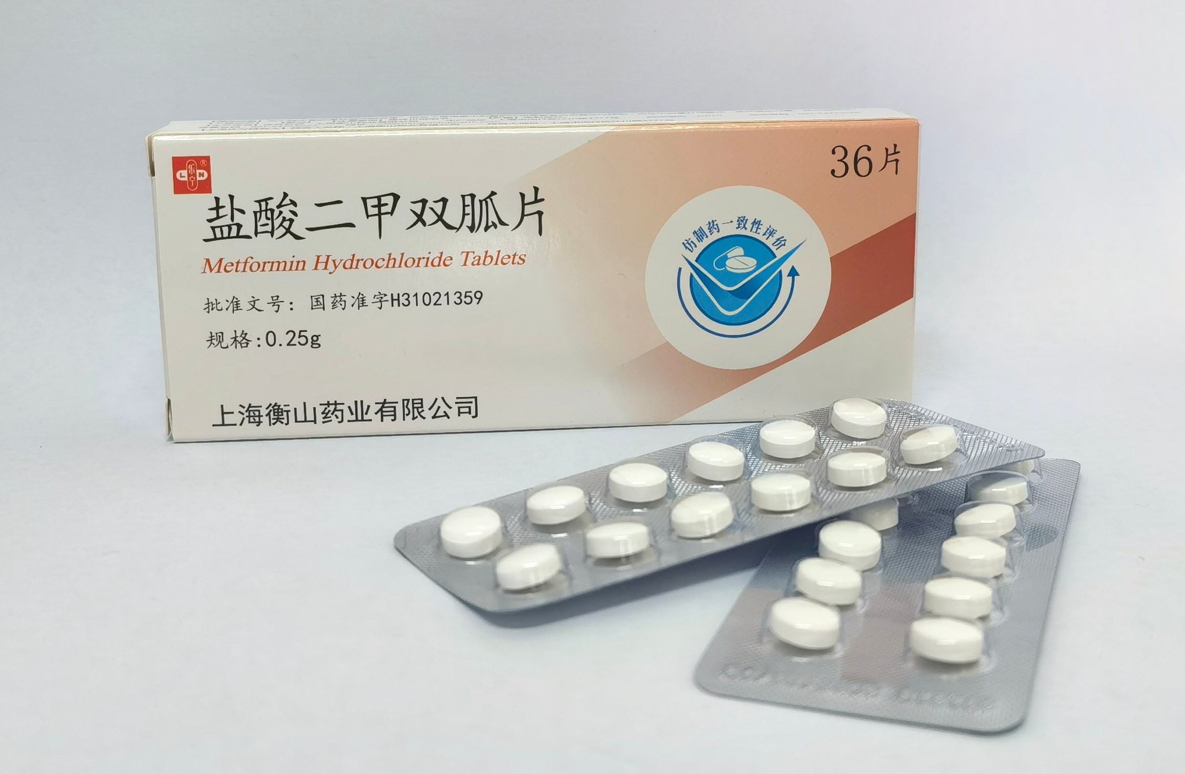適應癥:降低血糖,主要用于單純飲食及體育鍛煉控制血糖無效的2型糖尿病規格:0.25g包裝規格:36片/盒備注:醫保甲類批準文號:國藥準字H31021359產品名稱:鹽酸二甲雙胍片英文名稱:Metformin Hydrochloride Tablets